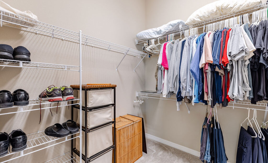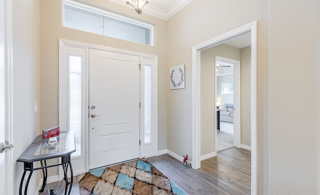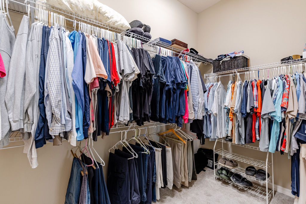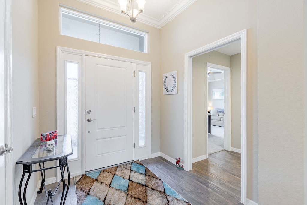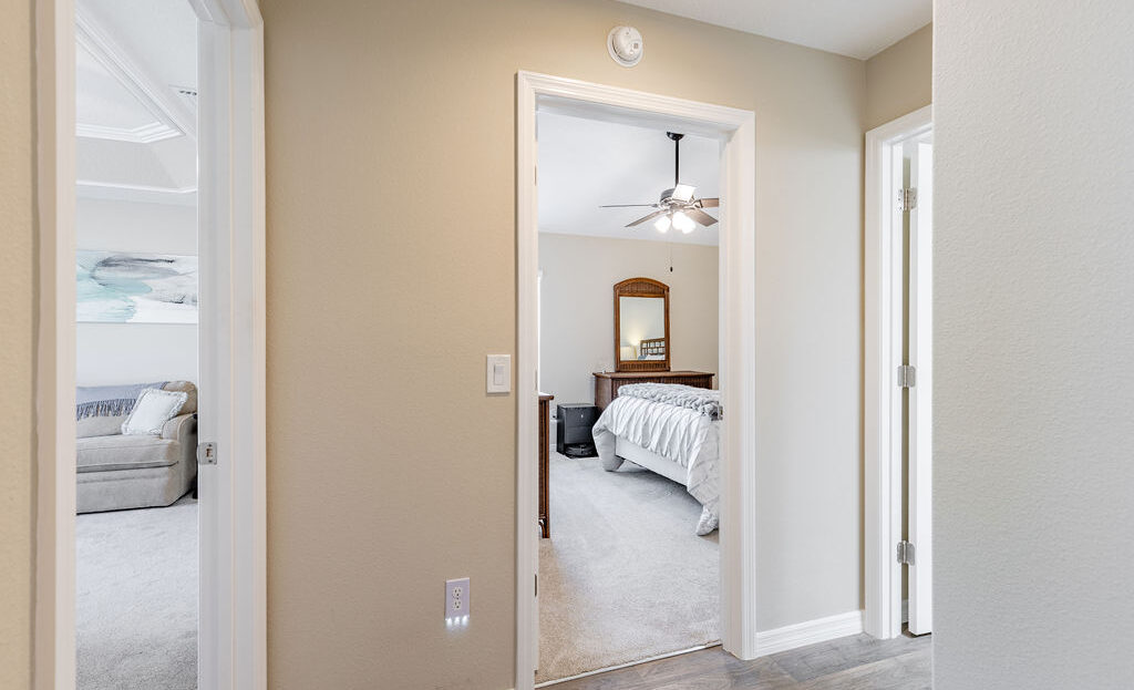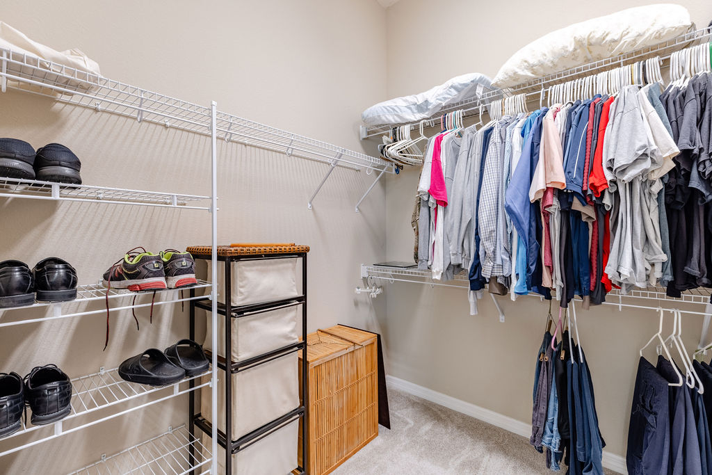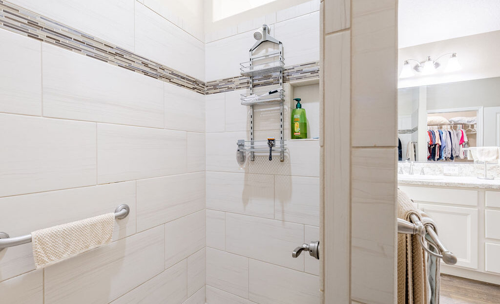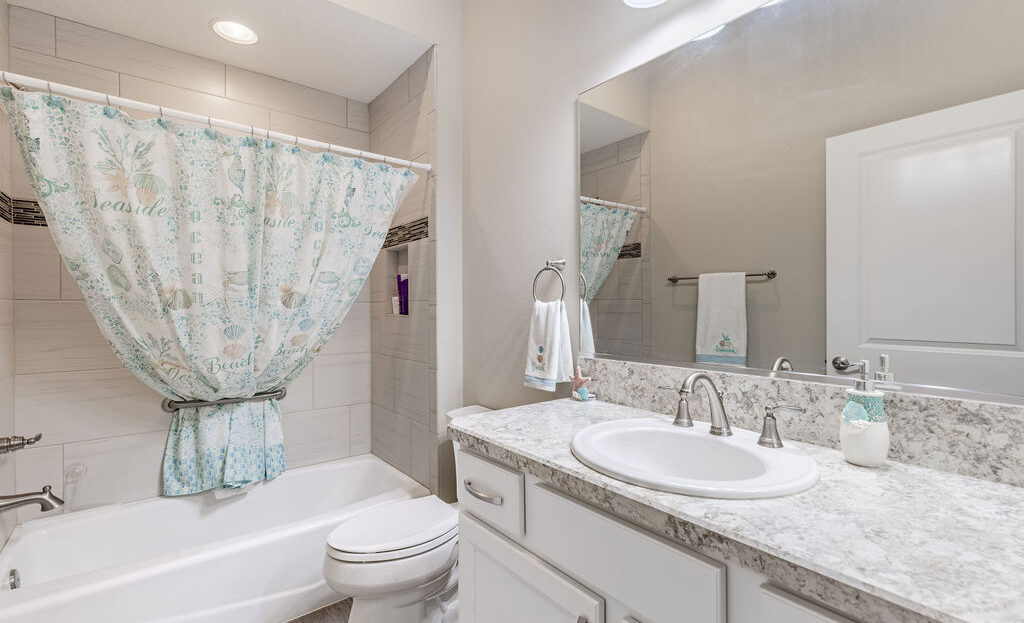 Inside, you’ll find soaring ceilings, natural light, and an open layout that feels comfortable from the moment you walk in. The kitchen is a standout, featuring quartz countertops, upgraded stainless steel appliances, abundant cabinetry, a large island, and custom touches that make the space both functional and inviting. The primary suite offers a spacious retreat with a walk-in closet, dual sinks, linen storage, and a walk-in shower, while the split-bedroom layout gives guests added privacy.