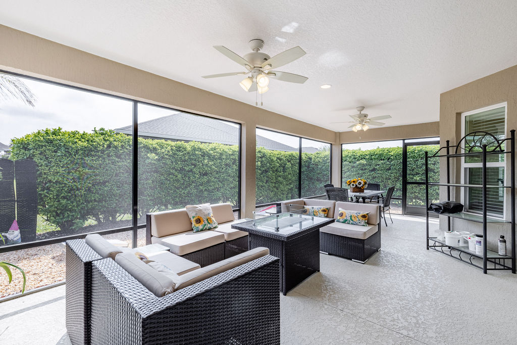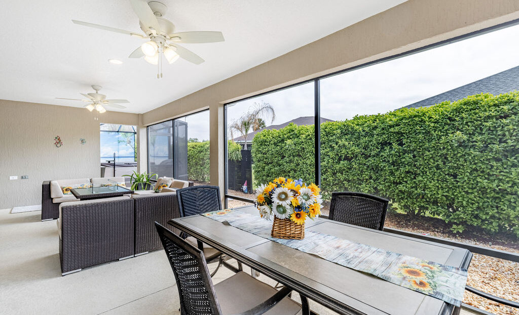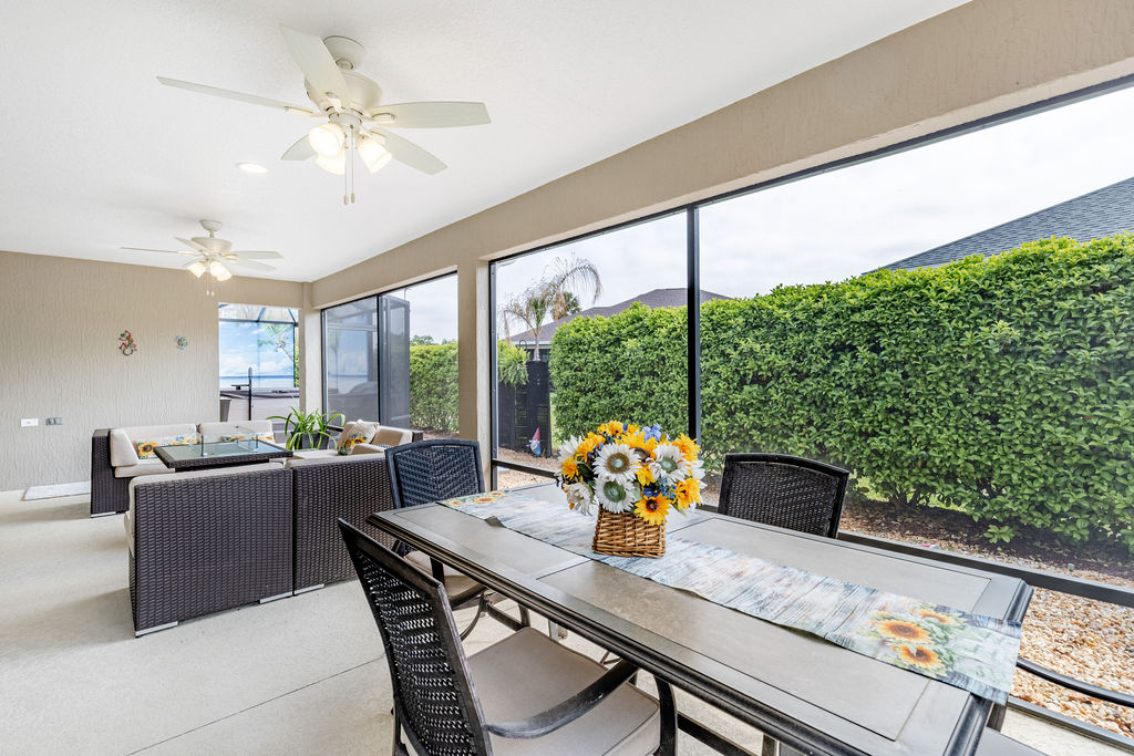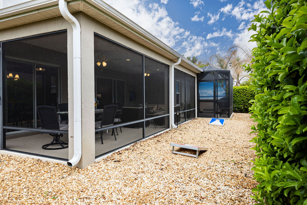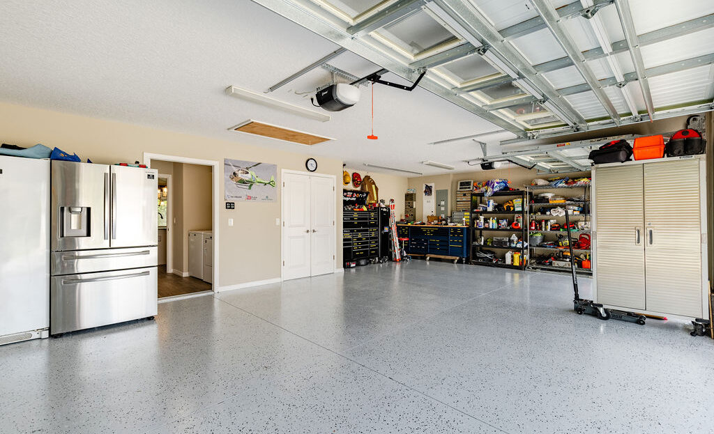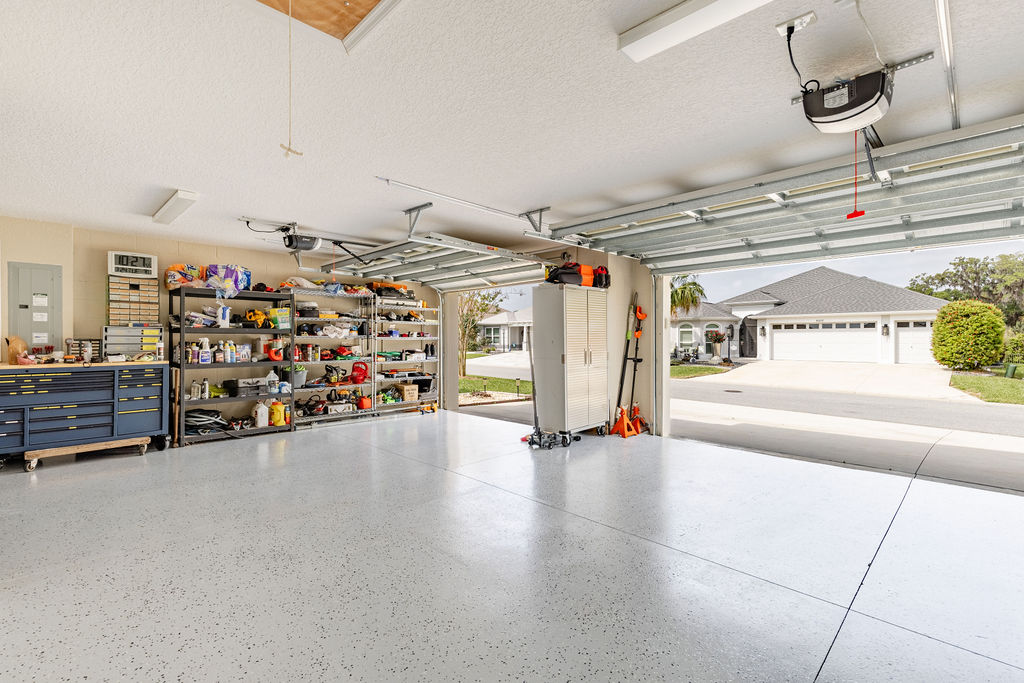 Step outside and the lifestyle really comes together. The expanded screened lanai, birdcage, and newer hot tub create a great setting for relaxing, entertaining, or just enjoying a quiet Florida evening. The oversized garage is another major plus, with room for 2 cars and 2 golf carts, along with epoxy flooring, custom LED lighting, a utility sink, and pull-down attic access.